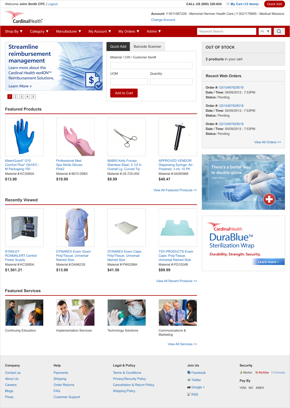 Redesigned the Cardinal Health homepage to reduce friction, improve discoverability, and support faster, more accurate task completion resulting in a 40% reduction in task completion time and a 25% drop in navigation related support tickets.